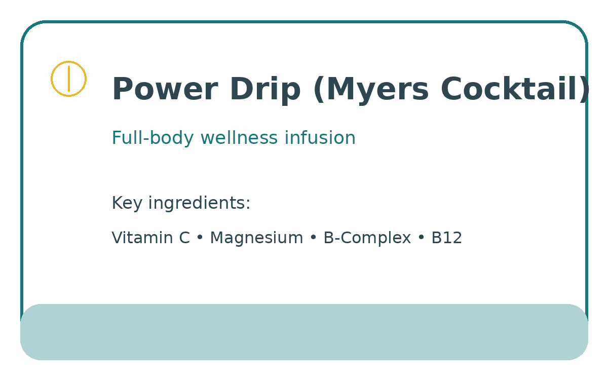 The classic Myer’s Cocktail re-imagined for full-body rejuvenation. Enhances wellness, immunity, and energy levels.